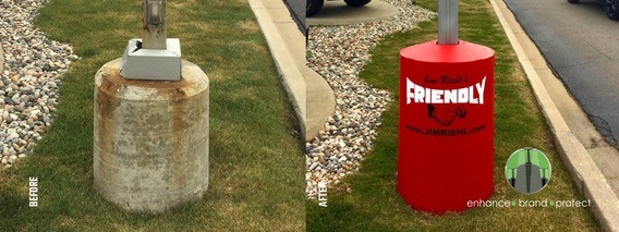 "The response to the product has been very positive as the covered logo pole bases completely accent and finish my updated facility. This upgrade adds another classy element to my already World Class Retail and Service environment."